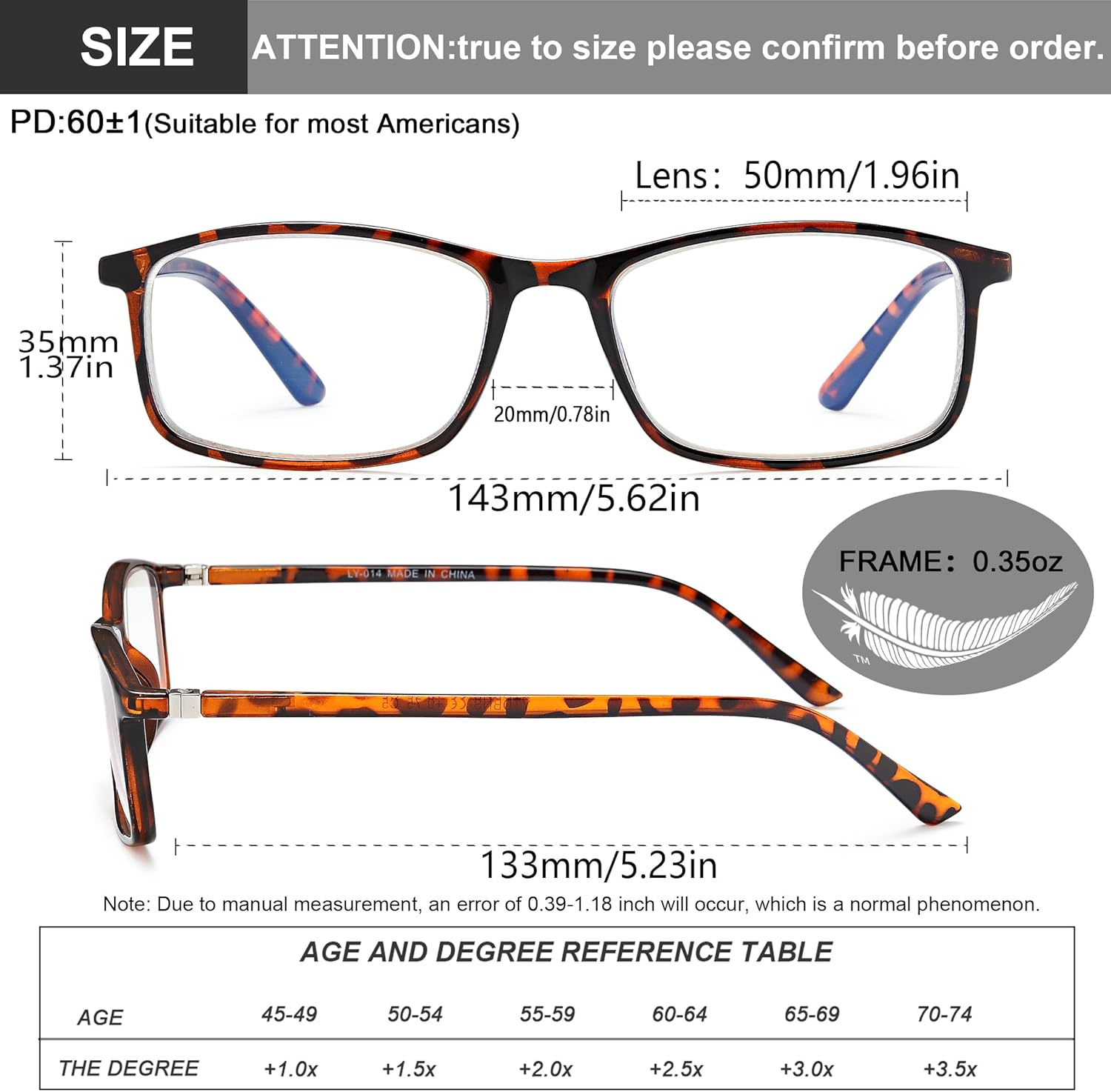 Professional Reading Glasses for Men/Women, Blue Light Blocking Computer Readers with Spring Hinges for Glare and UV Protection